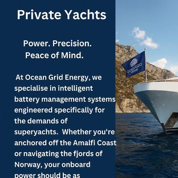 At Ocean Grid Energy, we specialise in intelligent battery management systems engineered specifically for the demands of superyachts. Whether you're anchored off the Amalfi Coast or navigating the fjords of Norway, your onboard power should be as seamless and refined as the vessel itself.